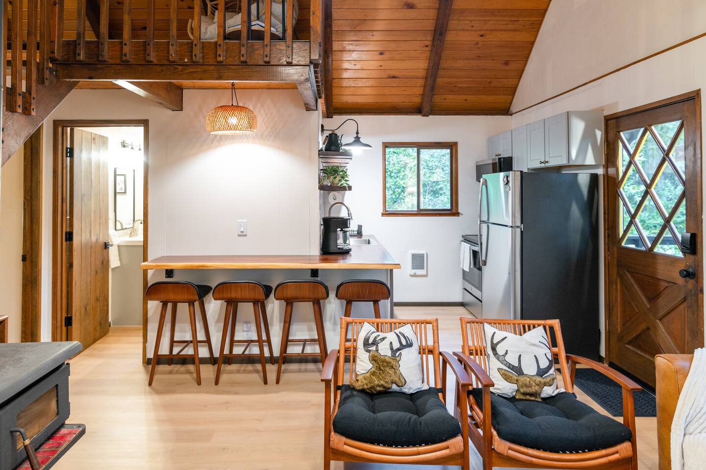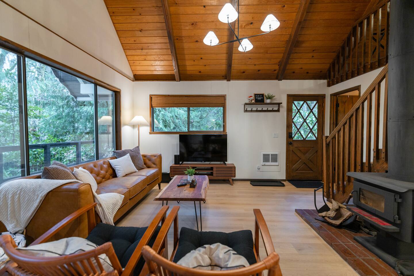 β’ Use caution around the river: In summer, water levels are lower and generally safe, but currents may vary. In other seasons, strong currents and rapid water level changes occur, so exercise extreme care near the water. β’ The cabin is part of a community with other nearby cabins (not secluded). Thanks for being respectful and keeping it quiet after 10 pm. β’ The cabin is situated in a wooded area, exposing guests to weather, wildlife, including pests, and occasional utility outages. Despite regular pest control and diligent cleaning, uninvited pests might be present. β’ Firewood and fire starters are not supplied; please purchase them on your way to the cabin. β’ Kids should be supervised at all times. Everyone staying at the cabin must be 21 or older unless accompanied by a parent. β’ May need AWD or tire chains appropriately in late fall and winter. β’ Events are not allowed. Private elopements are welcome. β’ Visitors are not allowed without permission. β’ Citywide Fire bans happen occasionally, and we must abide.