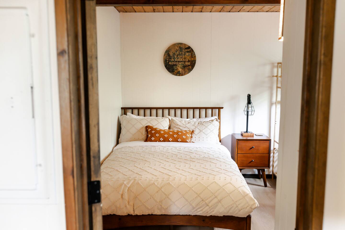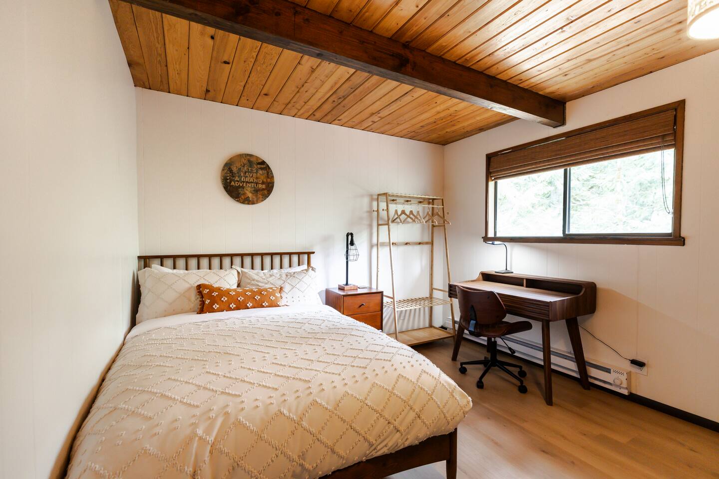 Fully remodeled in 2023, our modern yet cozy cabin is an ideal getaway for vacations or remote work. Bedrooms: β’ Loft with a luxurious King bed (no door) β’ First downstairs bedroom with a Queen bed β’ Second downstairs bedroom with a Full bed and desk Bathroom: β’ Standing shower without a tub Property Features: β’ Inviting hot tub, sanitized after each guest β’ Expansive riverfront with direct access β’ Fast and stable Wifi from T-mobile wireless β’ Riverfront firepit (bring your own wood) β’ Cozy wood stove inside (bring your own wood) β’ Spacious deck with scenic river and mountain views β’ BBQ grill and outdoor picnic table for al fresco enjoyment