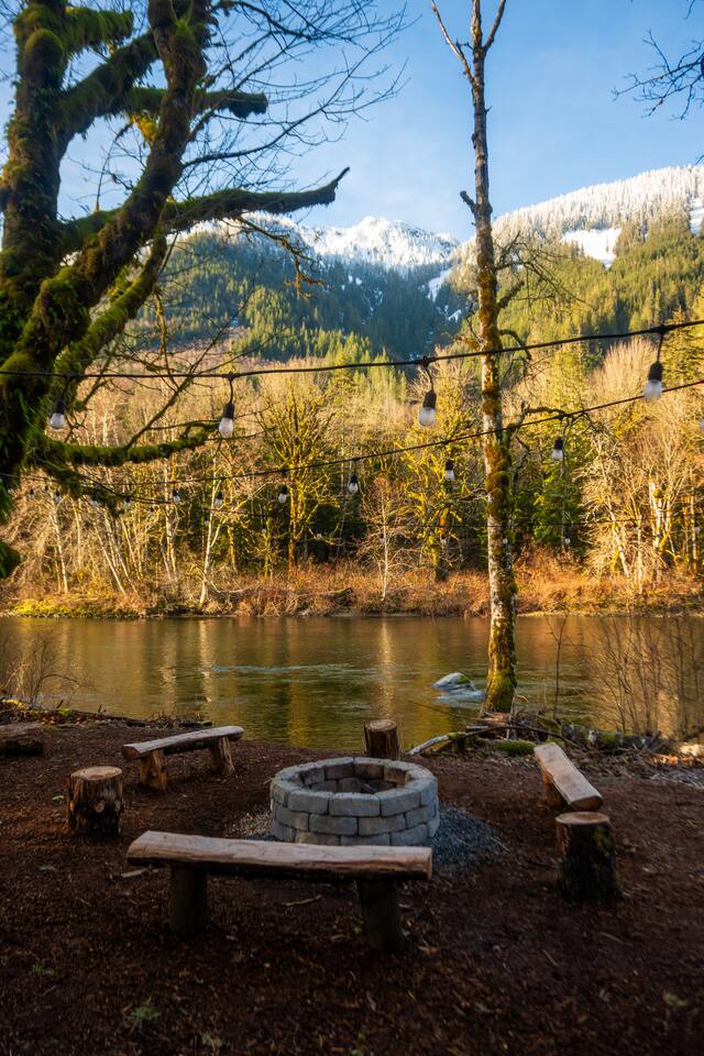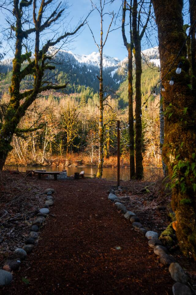 The cabin is in Riverwood Park, a peaceful community by the Skykomish River on Highway 2. The location is in Baring, WA, approximately 20 minutes away from Gold Bar's city center. It's a serene neighborhood with a community river path offering access to the beach. Nestled within the stunning Mt Baker Snoqualmie National Forest, it boasts breathtaking views of the majestic Cascade Mountains.